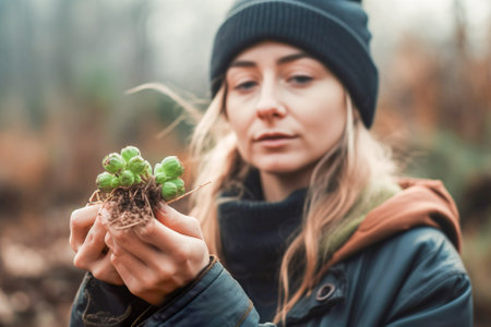 Female environmental scientist exploring plants. Environmental and ecology research. AI generated