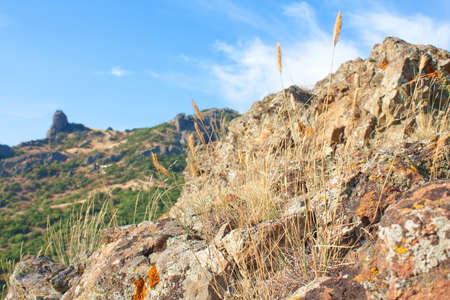 Dry grass on Karadag mountain. National park, Crimea, Ukraine