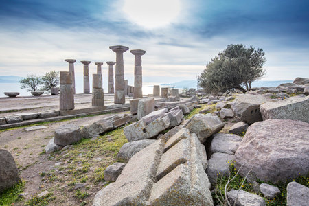 Ancient columns of Athena Temple in Assos, Canakkale, Turkey