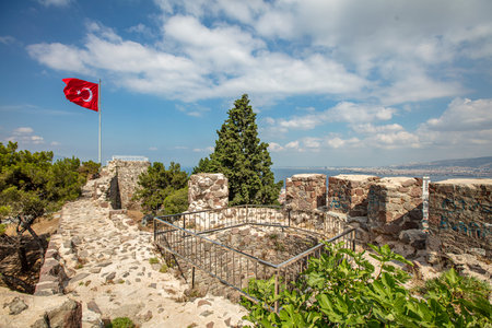 View from Kadifekale Castle, locally known as Kadifekale is an ancient castle lies on a mountain in the center of the city of Izmir, Turkey.