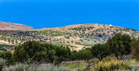 Beautiful view of an olive plantation on the mountain of Crete in Greece