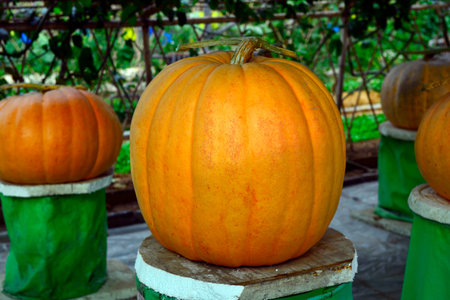 pumpkins in honor of the celebration of autumn and Halloween. festival of vegetables.