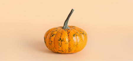 Pumpkin seamless pattern on beige background. Banner. Halloween pumpkin background. Autumn concept. Side view.