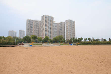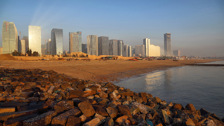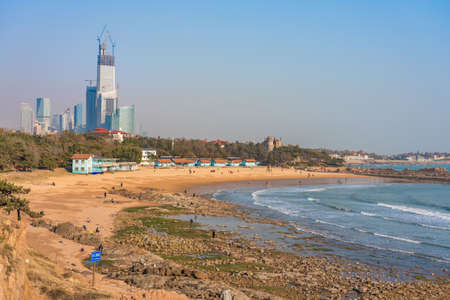Beach and buildings in the city of Qingdao, China