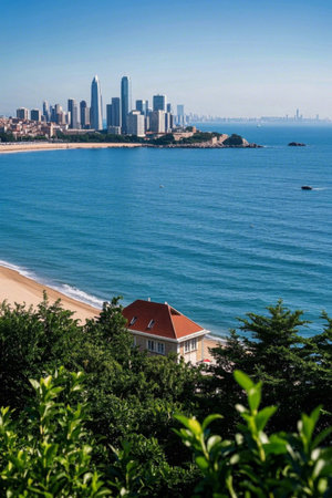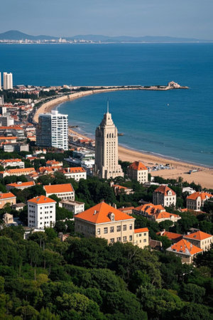 Panoramic view of Qingdao's coastal urban architecture