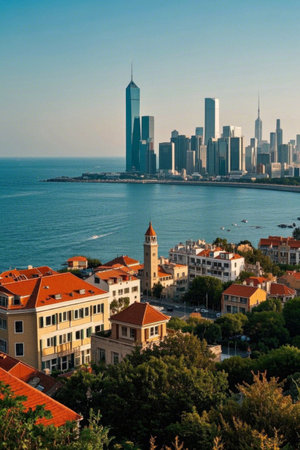Qingdao coastal city high rise landscape