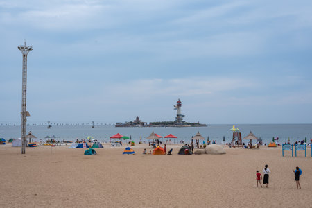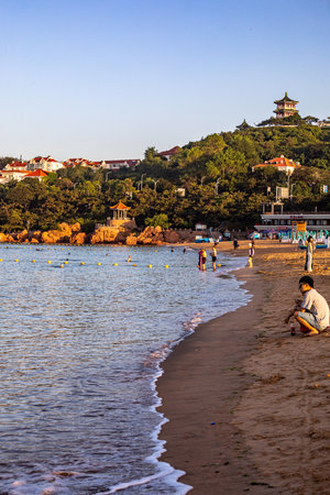 QINGDAO, CHINA - NOVEMBER 15: View of the beach at Badaguan scenic area, a famous tourist destination on November 15, 2019 in Qingdao