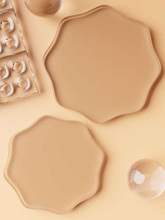 3D Rendering Geometric or Abstract Shape Acrylic Glass Plates Product Display Background for Summer Healthcare and Skincare Products.