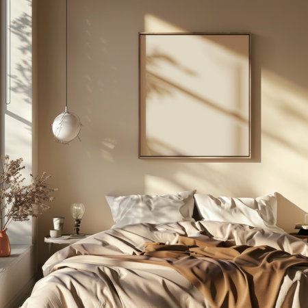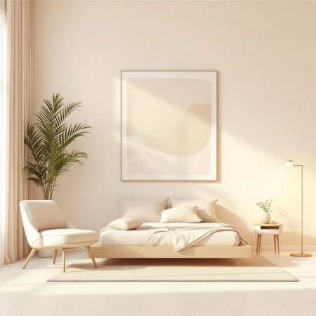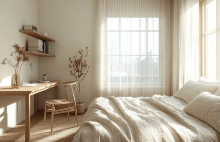 Serene bedroom interior with neutral tones and natural light