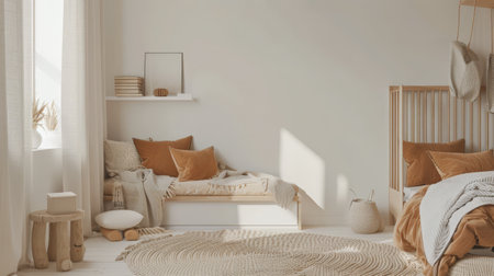 Minimalist kids room composition in beige colors