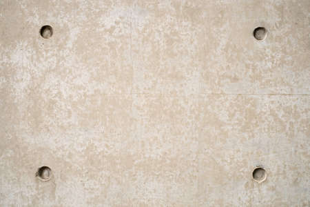 Concrete wall with a textured surface and circular indents in urban setting
