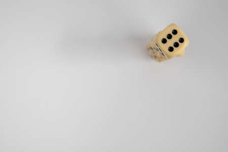 Playing white dice on a light background closeup