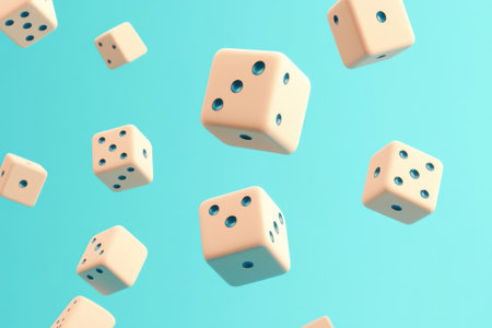 3D isometric floating dice, light blue background, light pink and beige color palette, simple shapes, low-poly style, flat colors, simple design, simple shadows, minimalism, vector art, 2D, high resolution, high quality, very detailed, digital art, in the style of Octane Render --ar 3:2 --v 6.1 Job ID: f7945f28-0f26-4649-98c0-10b77dde3334