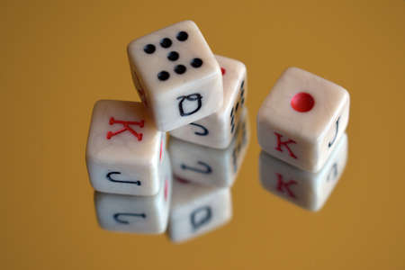Closed up shot of poker dices over a white background