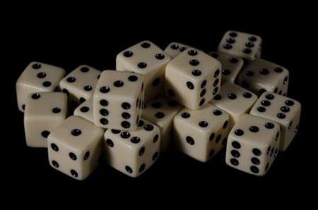 Dice beige on a black background closeup