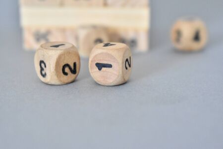 Wooden cubes with numbers.