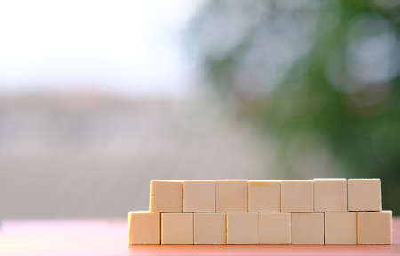 Wooden blocks stacked on top of each other on a bright background