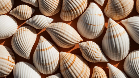 AI Generated. Beige Seashells Displayed Artfully with Distinctive Features