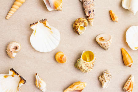 Background of various sea shells. Summer holiday.