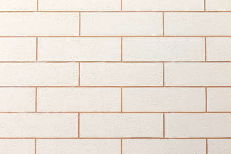 Light brick element fragment abstract interior design wall pattern warm sand clay color texture facade background.