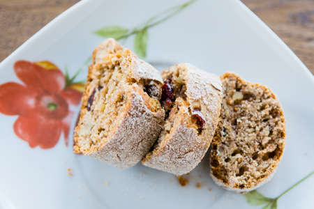 Three cookies with raisins made from gluten-free flour, shallow depth of field