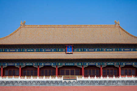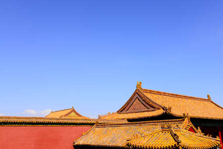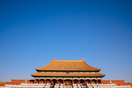 beijing forbidden city against a blue sky, the main hall of the imperial palace, China