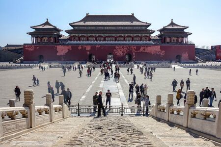 BEIJING, CHINA - MARCH 11, 2016: Forbidden City. People visit the Forbidden city, it was the Chinese imperial palace from the Ming dynasty to the end of the Qing dynasty.