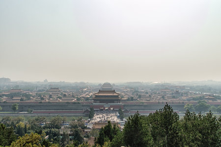 BEIJING, CHINA - SEPTEMBER 8: Forbidden City north entrance full of people viewed from Jingshan park on September 8, 2015 in Beijing, China