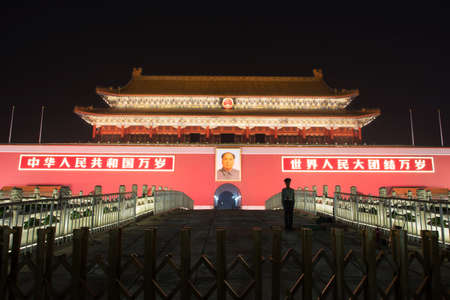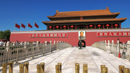 BEIJING, CHINA - SEPTEMBER 26, 2016:The Gate of Heavenly Peace at one of the most famous squares in China, Tienanmen square
