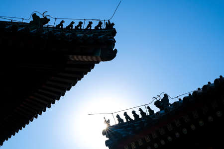 Beijing, China - November 19, 2019: The forbidden city in beijing. The Zhaoxian Temple. Richly decorated Buddhist temple from the Qing dynasty. thousands of people visit the city every day