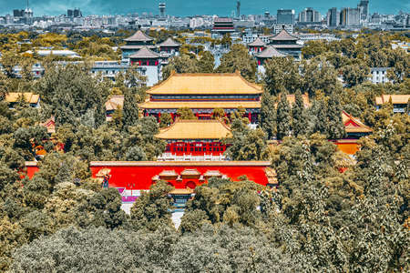 Jingshan Park,panorama above on the Forbidden City, Beijing. China