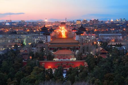 Beijing / China - March 18, 2016: Night view of Beijing skyline from the Jingshan park hill in Beijing, China