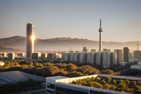 of a photovoltaic elements integrated an a roof of a building in an african sustainable green