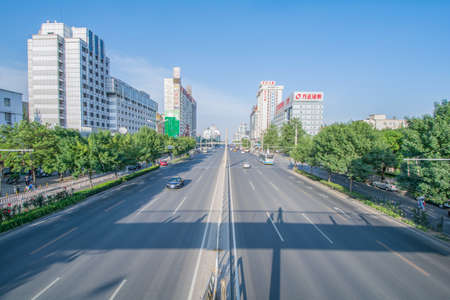 BEIJING, CHINA 21 May 2016, view on the broad roads of Beijing on a sunny day with low smow level on 21 May 2016