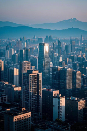 Sunset view of the city of Shenzhen, China. Shenzhen is the capital and largest city of Guangdong Province.