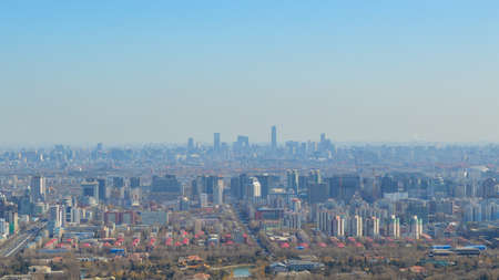 Beijing / China - March 1, 2014: Aerial view of downtown Beijing, view from the Central Radio and TV Tower in Beijing