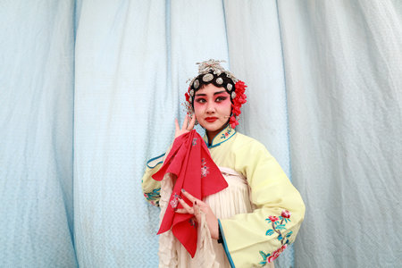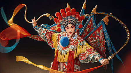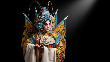 Portrait of a Chinese opera performer wearing traditional costume and makeup, showcasing the rich culture and artistry of this ancient art form