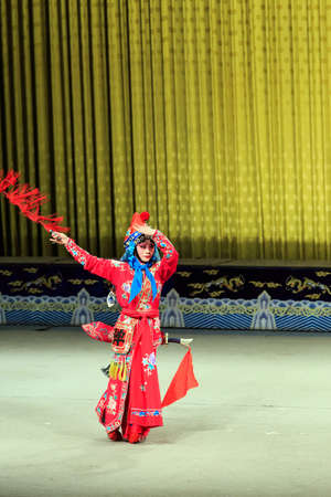 LUANNAN COUNTY - JANUARY 3: The female role in Chinese opera on the stage, in the ChengZhaoCai grand theater, January 3, 2014,luannan county, hebei province, china.