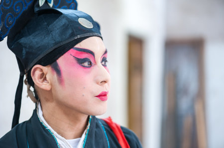 Chongzhou, Sichuan Province, China - April 04 2015: Portrait of a Sichuan Opera company actor.
