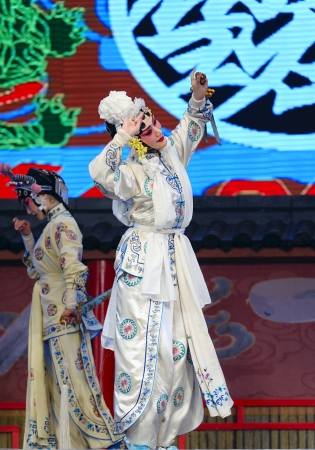 CHENGDU - JUN 4: chinese Hui opera performer make a show on stage to compete for awards in 25th Chinese Drama Plum Blossom Award competition at Xinan theater.Jun 4, 2011 in Chengdu, China.