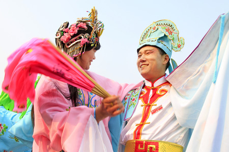 LUANNAN COUNTY - NOVEMBER 25: The ancient costume PingJu QianKun-Fu-Shou Mirror still in the ChengZhaoCai grand theater, on november 28, 2013, luannan county, hebei province, china.