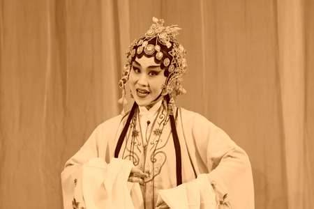 LUANNAN COUNTY - NOVEMBER 25: The ancient costume PingJu Face peach blossom still in the ChengZhaoCai grand theater, on november 28, 2013, luannan county, hebei province, china.