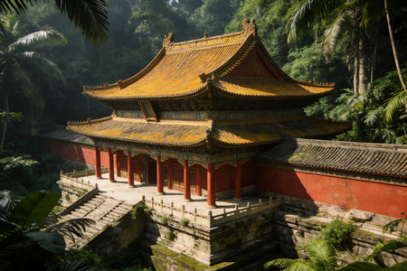 The ancient architecture of the Chinese temple in the middle of the jungle