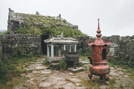 Abandoned altar complex with incense burners on Wugong Mountain in Jiangxi, China