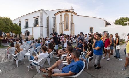 FARO, PORTUGAL: 6th SEPTEMBER, 2019 -Audience watches with attention an interview in Festival F, a big festival in Faro, Portugal.