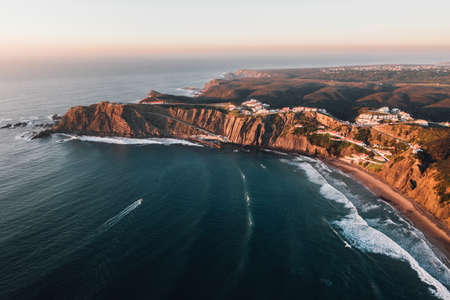 Aerial view of the Cabo Sardao cliffs and Waves Atlantic coast Portugal Nature Travel
