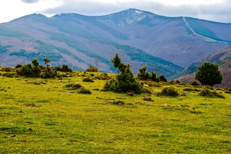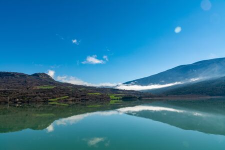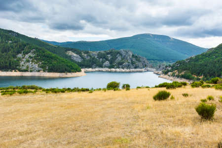 Beautiful landscape in Spain. Dramatic view of Cantabrian Mountains with artificial lake