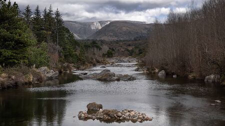 Wild river under a cloudy sky in long exposure picture in Spanish Pyrenees