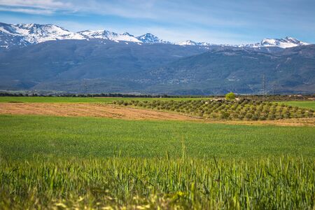 ...View of the Sierra de Guadarrama mountain range near Madrid in Spain with winter sky in the background