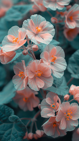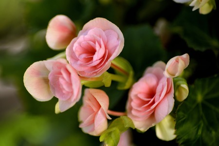 Close up of pink begonia flowers in full bloom, natural background